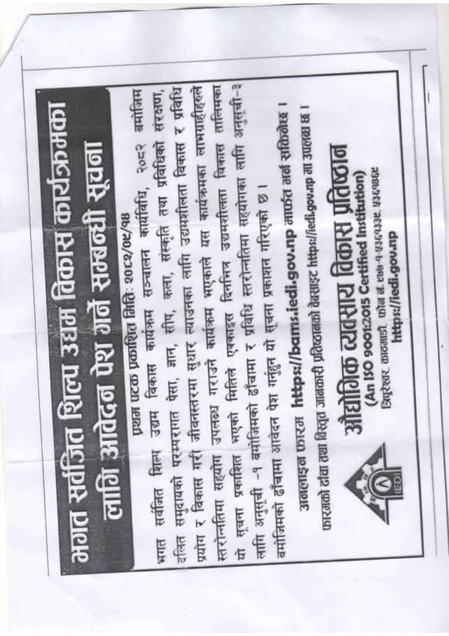 भगत सर्वजित शिल्प उद्यम विकास कार्यक्रमका लागि आवेदन पेश गर्ने सम्बन्धी सूचना !!!