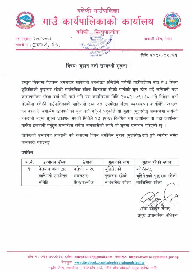 मुहान दर्ता सम्बन्धी सूचना !!!