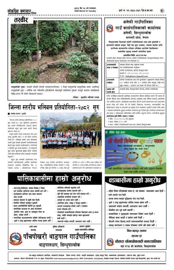 सिन्धुपाल्चोक जिल्लाको बलेफी गाउँपालिकाका भएर बग्ने सुनकोशी र ब्रह्मायणी नदीबाट बालुवा, गिट्टी तथा ढुंगा उत्खनन् संकलन कार्यका लागि प्रारम्भिक वातावरणीय परीक्षण प्रतिवेदन तयारीको सिलसिलामा सार्वजनिक सुनुवाइ सम्बन्धी सार्वजनिक सूचना !!!