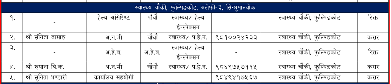 स्वास्थ्य चौकी, फुल्पिङकोट