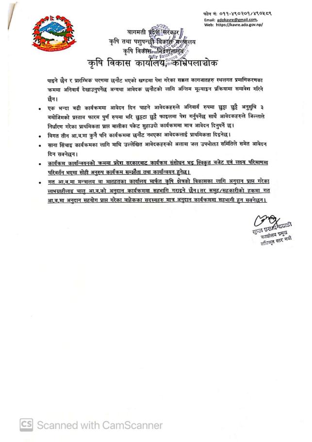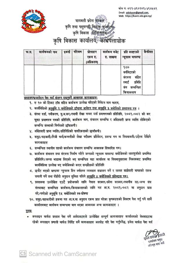 कृषि व्यवसाय प्रवर्द्धन कार्यकममा सहभागिताका लागि प्रस्ताव/आवेदन आव्हान सम्बन्धी सूचना !!!