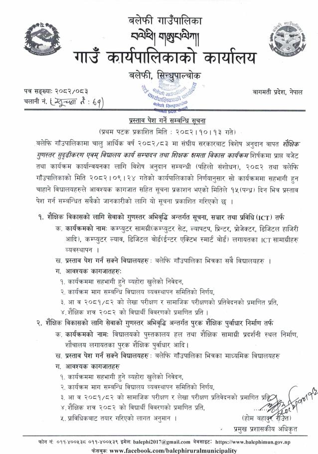 प्रस्ताव पेश गर्ने सम्बन्धी सूचना !!!