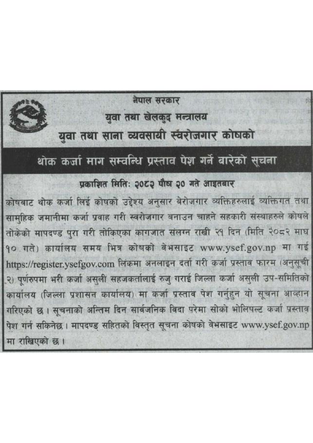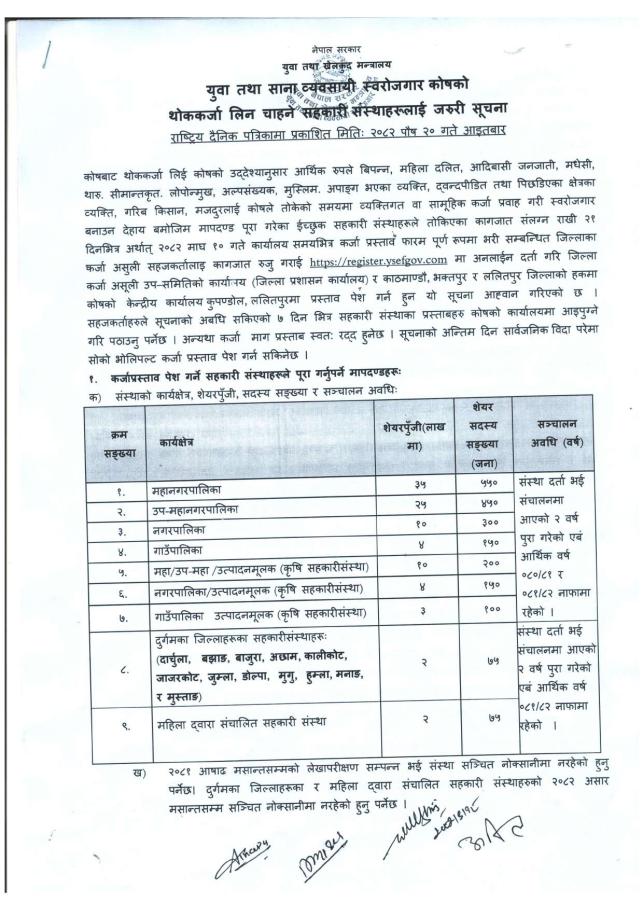 थाेक कर्जा लिन चाहने सहकारीहरुलाई अत्यन्त जरुरी सूचना !!!