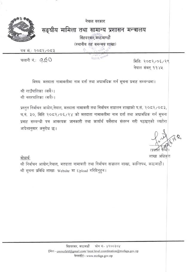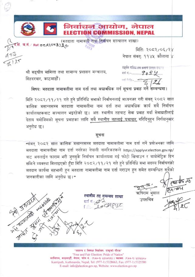 मतदाता नामावलीमा नाम दर्ता तथा अध्यावधिक गर्न सूचना प्रवाह सम्बन्धमा।