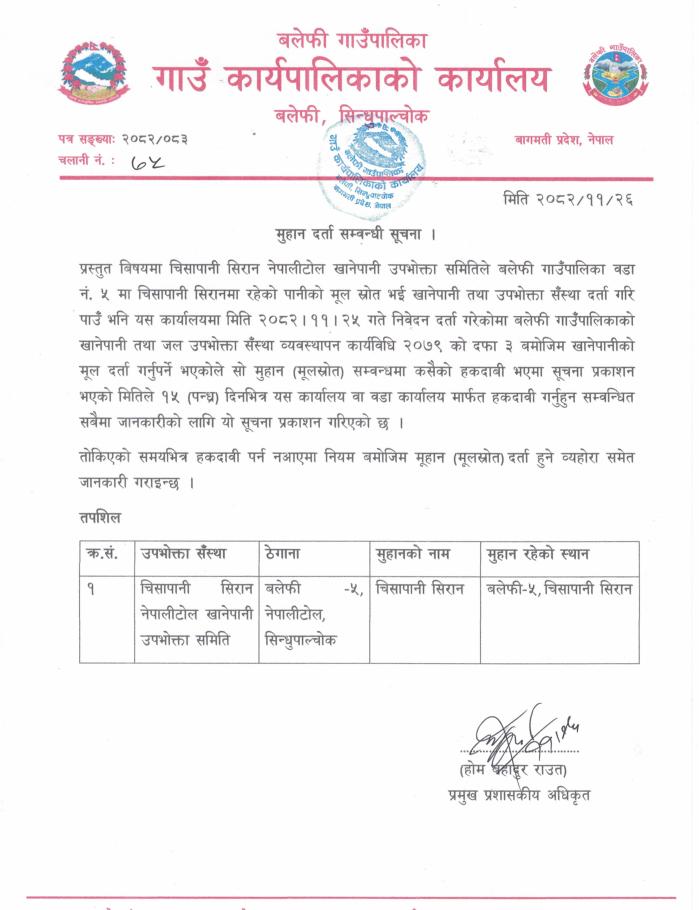 मुहान दर्ता सम्बन्धी सूचना !!!