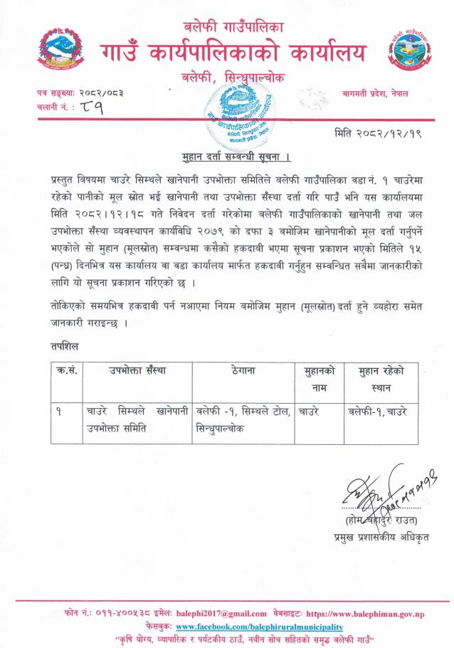 मुहान दर्ता सम्बन्धी सूचना !!!
