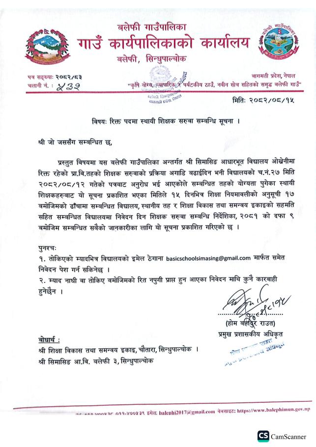 रिक्त पदमा स्थायी शिक्षक सरूवा सम्बन्धी सूचना !!!